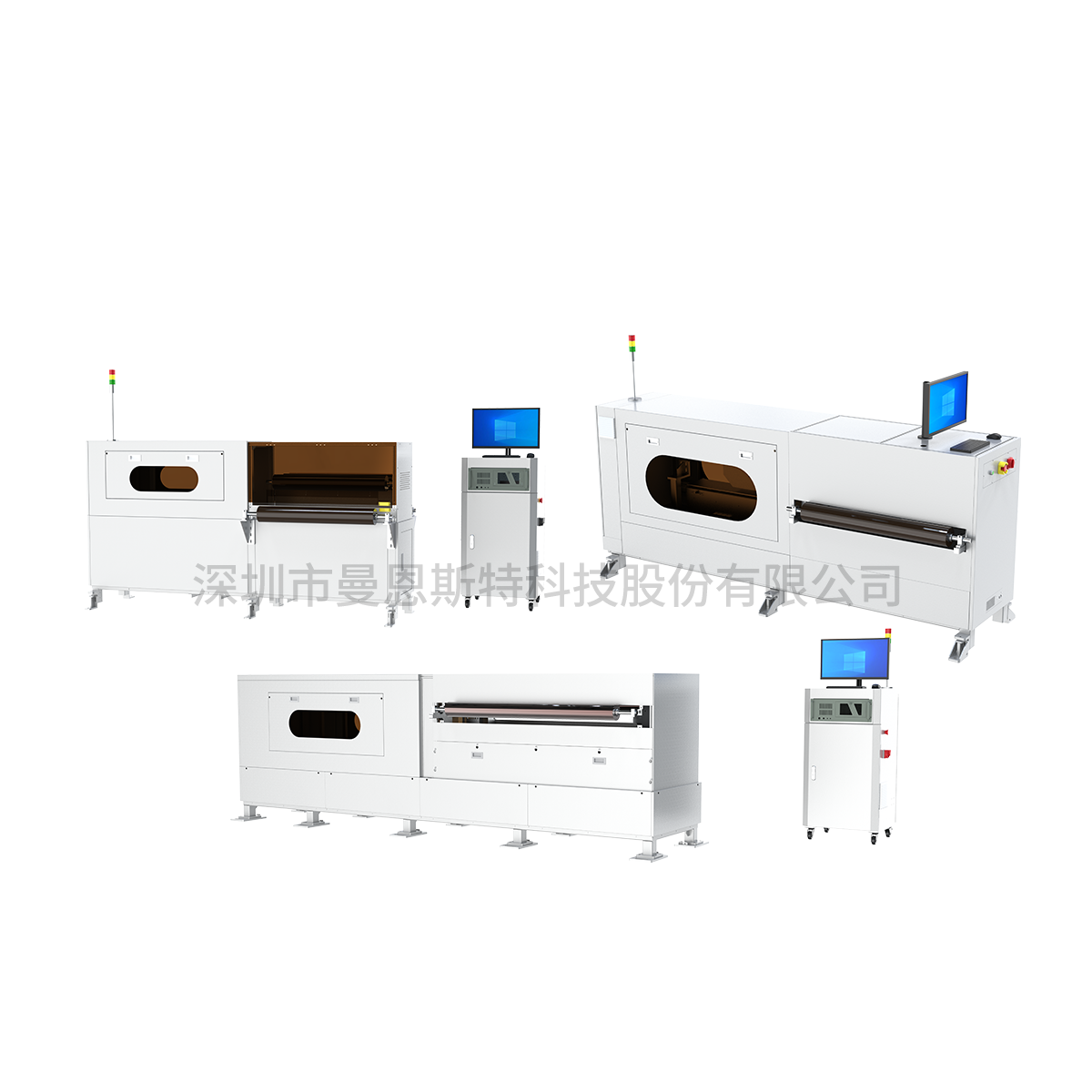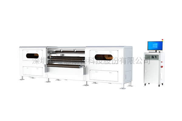 Laser Metrology SystemLaser measurement system utilizes triangulation principle with dual high-precision laser displacement sensors coaxially mounted in opposition within upper/lower arms of a transversely traversing C-frame carriage, enabling online non-contact thickness metrology for lithium electrode coating layers and taper zones during coating/slitting/winding processes, as well as thickness inspection for metal foils, films, sheets and plates in general material industries.
